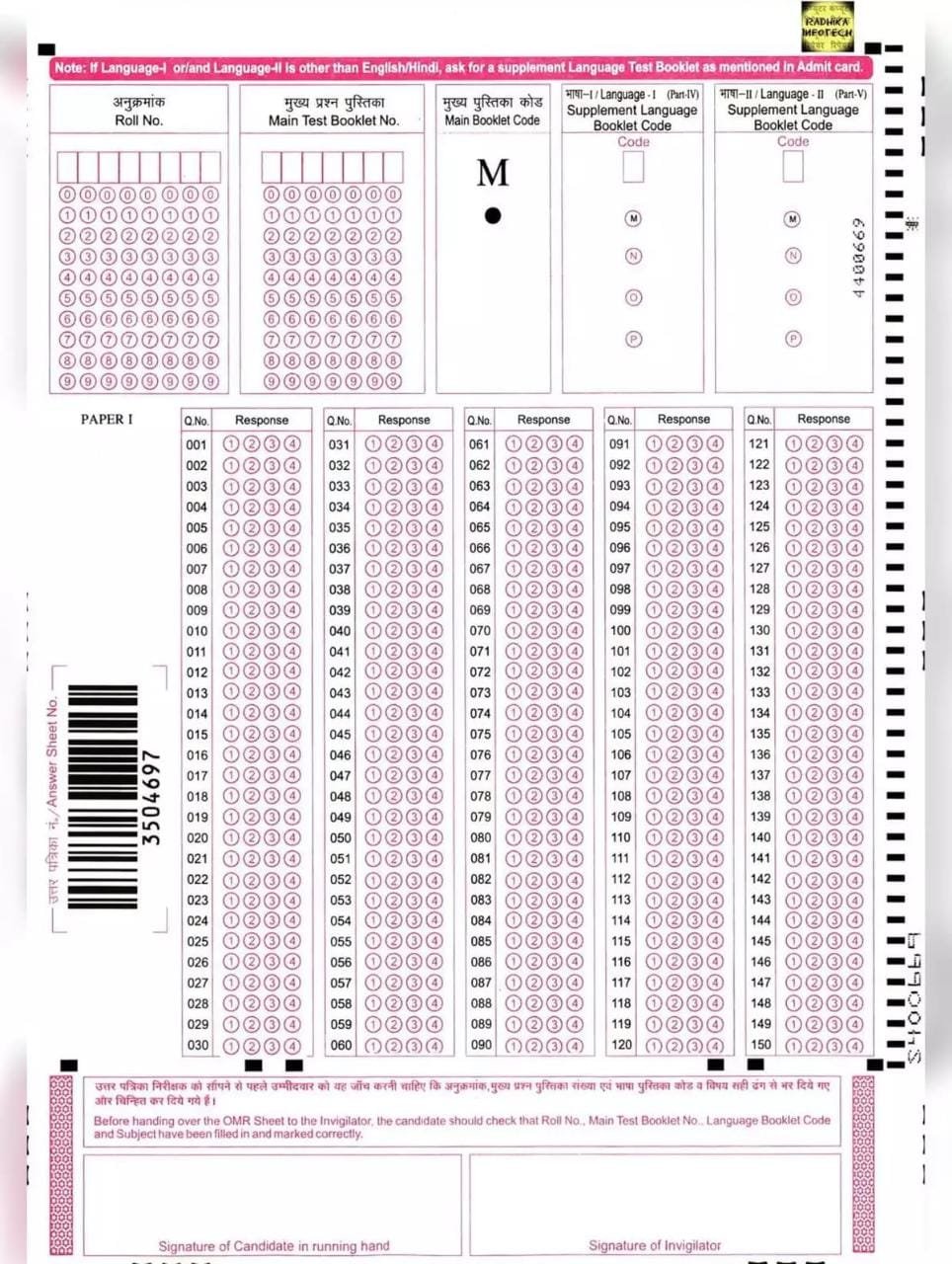 - OMR शीट पर कटिंग, ओवरराइटिंग या व्हाइटनर का उपयोग दर्ज नहीं किया जाता।